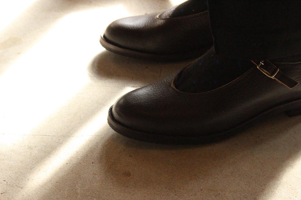 ブーツの次はストラップシューズ。 この靴も杖の代わりになってほしい。