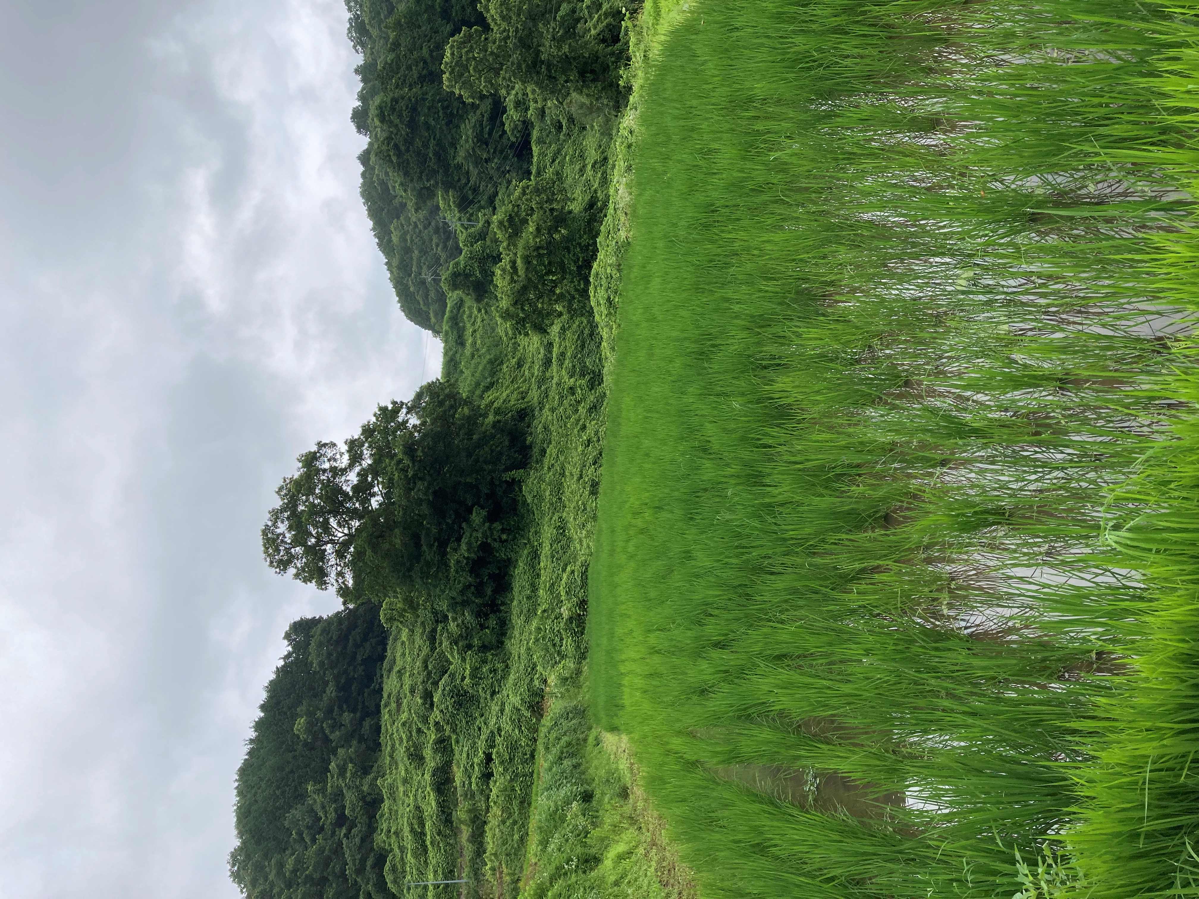 小雨降る中、田んぼの除草作業。