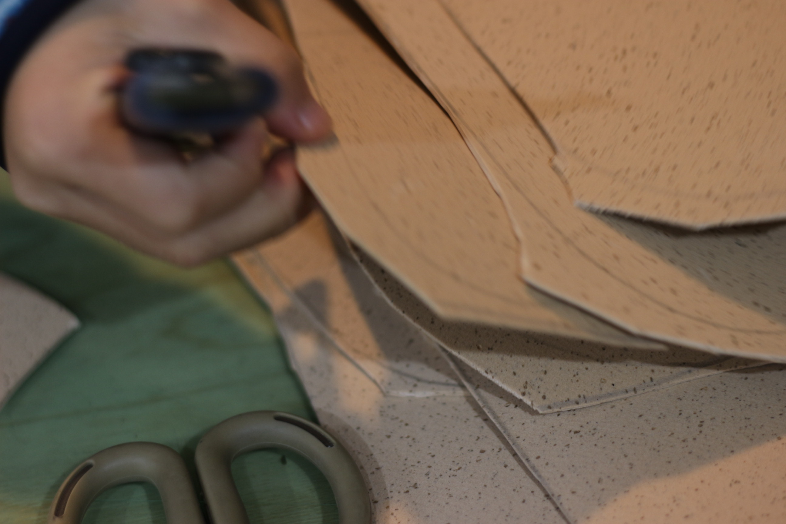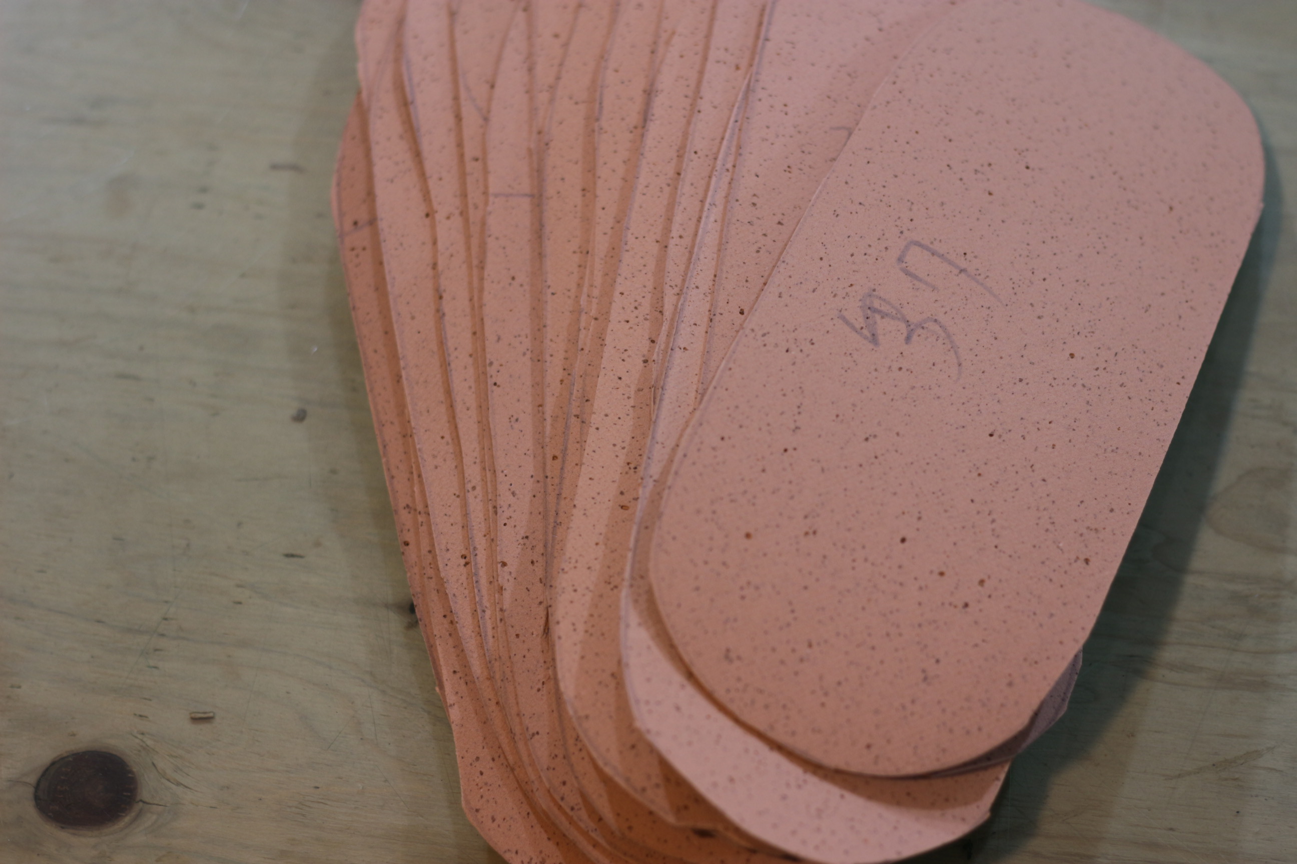 インソール用のコルクのカットをお願いしている。
