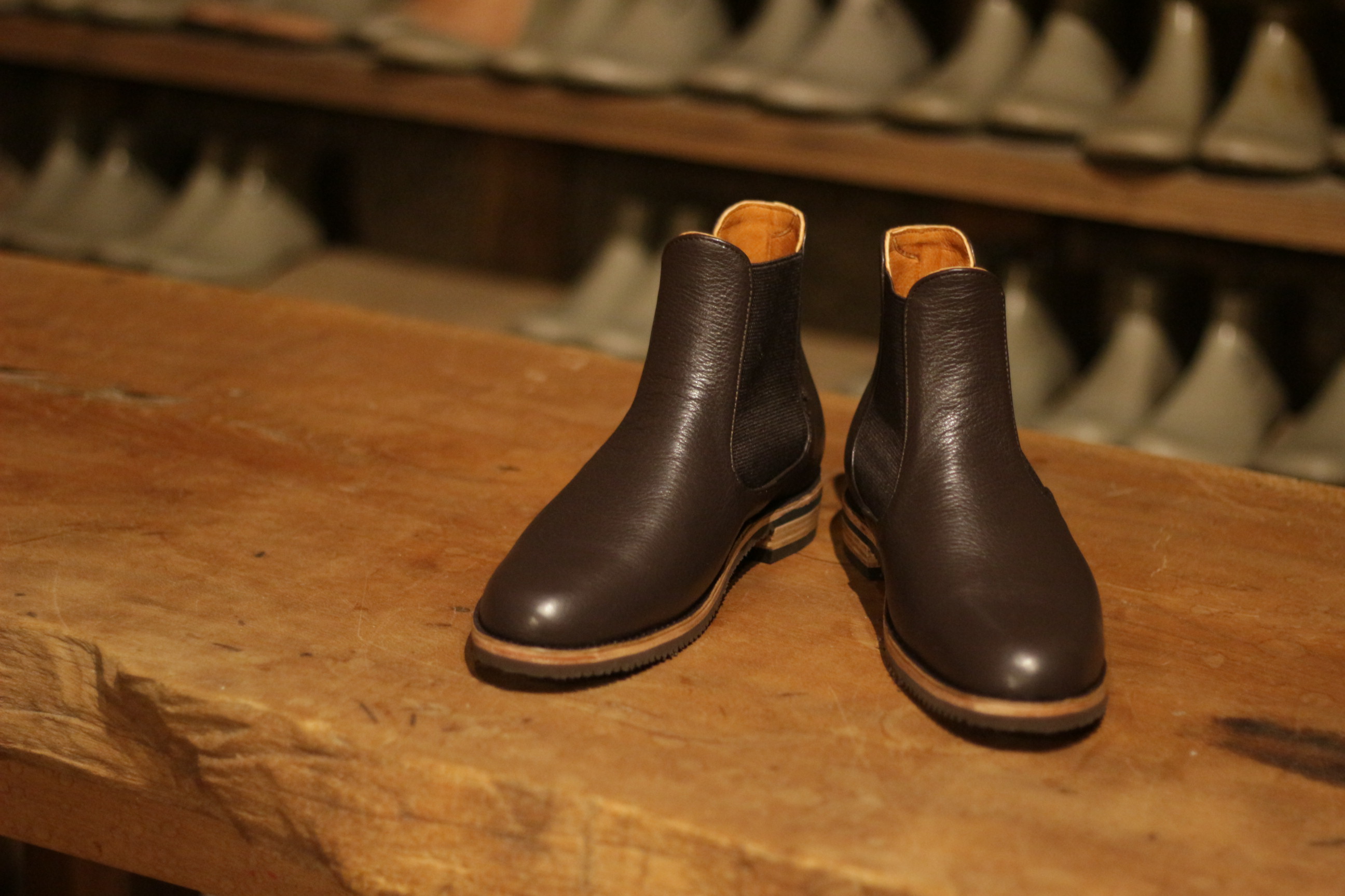 今日はのび小がお休みのため、ぶんじは靴づくりのアルバイト。
