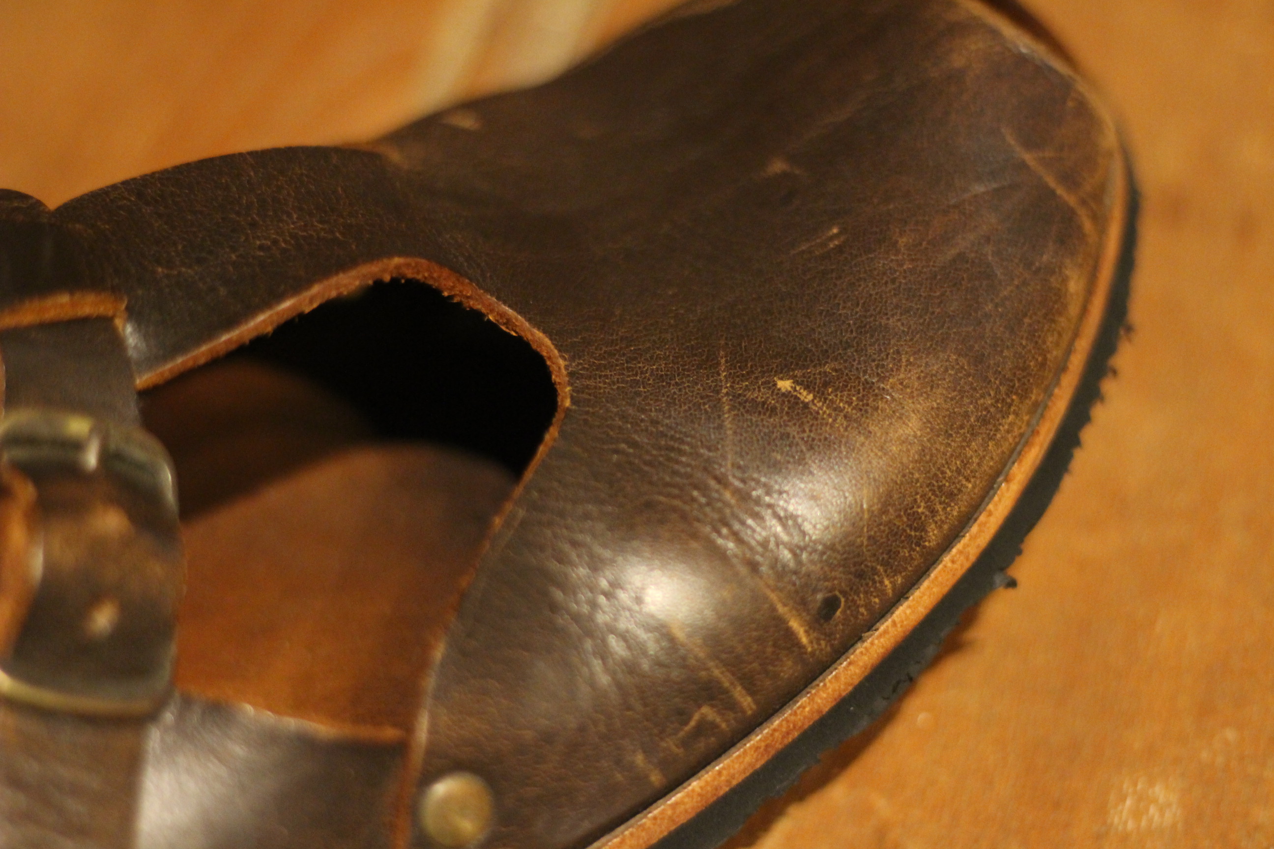 もうこの革は廃番になってしまったのですが とにかく水に強い革で、川遊びで履き続けても無問題です。