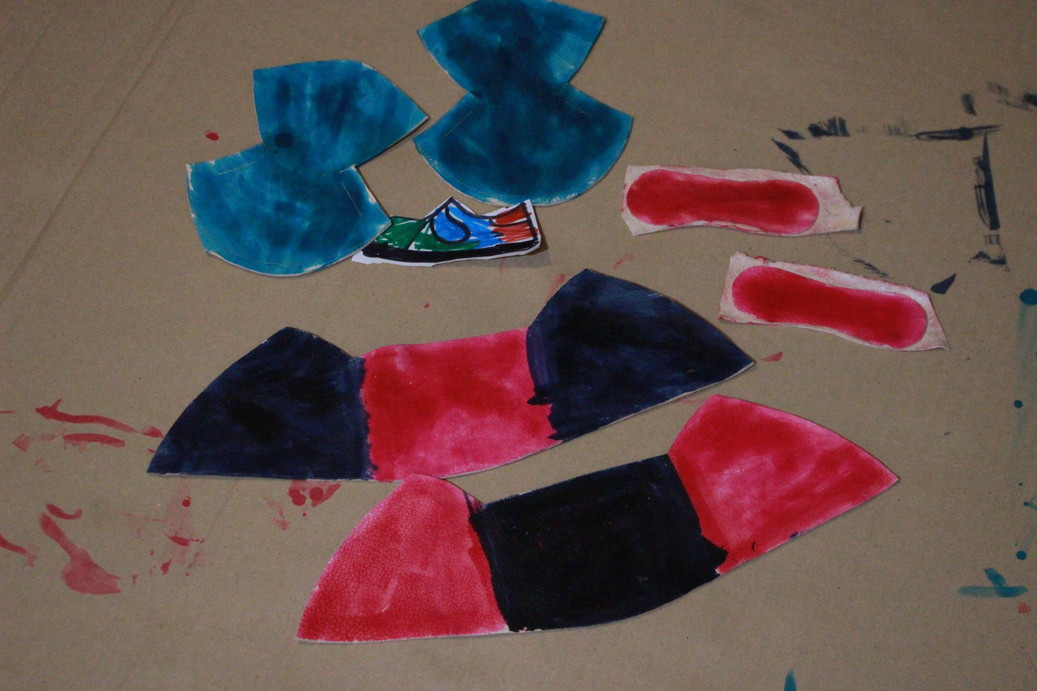 革の裁断まで段取りしておいて、夕飯前にいっしょに色を塗りました。